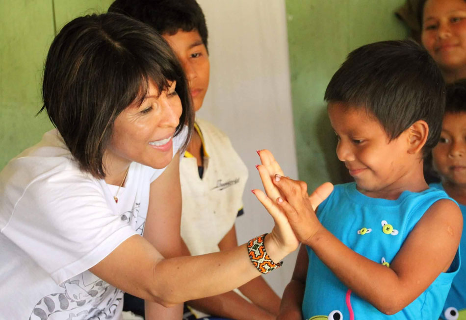 Lodge owner Dolly Beaver with child of the Tahuayo